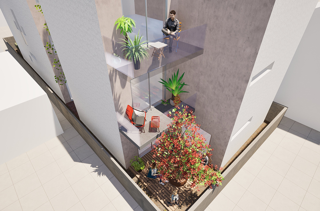 全住戸角部屋+多面採光で通風・採光に配慮された全6戸のコーポラティブハウス。