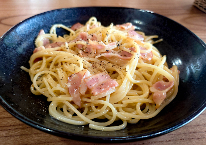 カルボナーラ、プリンは、地元の石井金原養鶏の新鮮なたまごを用いて、コクと味わいの深さを生かした一品です。