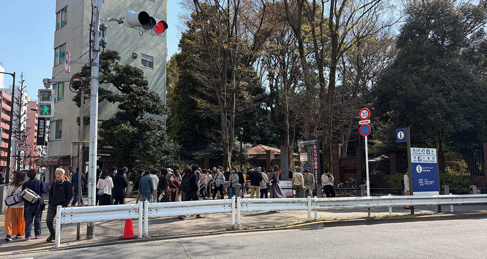 六義園周辺は春の陽気で大賑わいで、入場する行列ができていました。