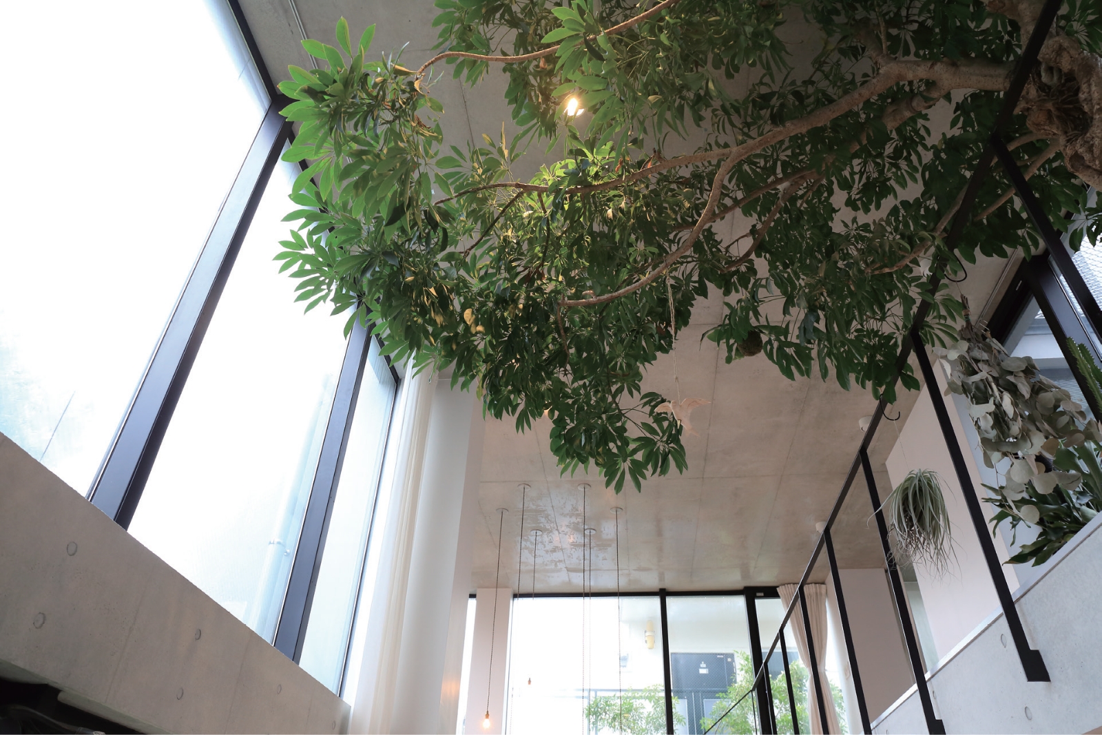 のびのびと広がる植物を通して木漏れ日のような明かりに